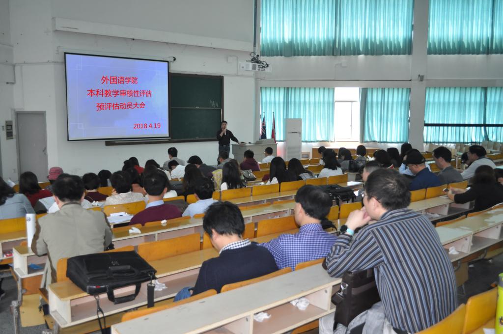 4月19日下午,私房tv 在外语楼310报告厅召开了本科教学审核性评估预评估工作动员大会。大会由院长唐艳芳主持,全体教职工出席了会议。