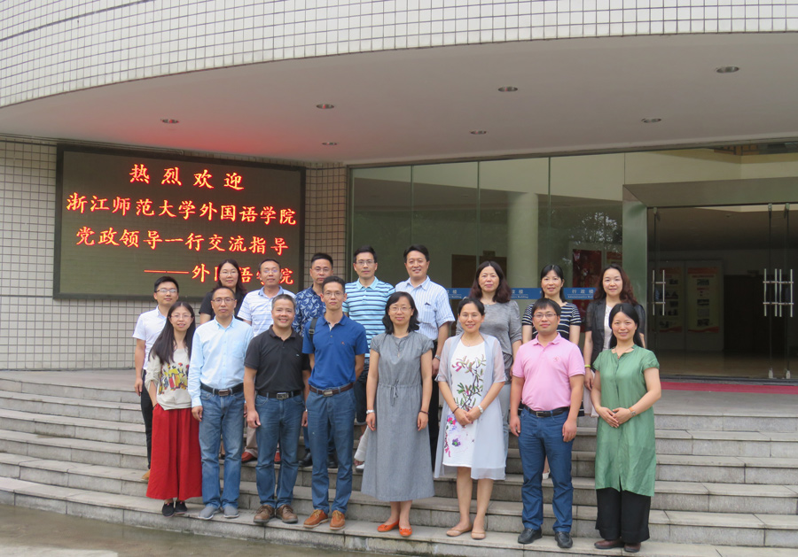 2017年6月26-27日,浙江师范大学私房tv 党委书记俞明祥、院长洪明、党委副书记林凌斌、副院长胡美馨、日语系主任徐微洁、翻译系主任李建军、大外部主任骆巧丽、教务办主任颜文钦、院办主任郑基一行9人来我院考察交流。