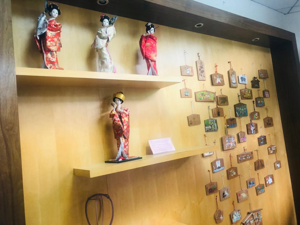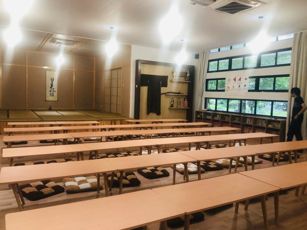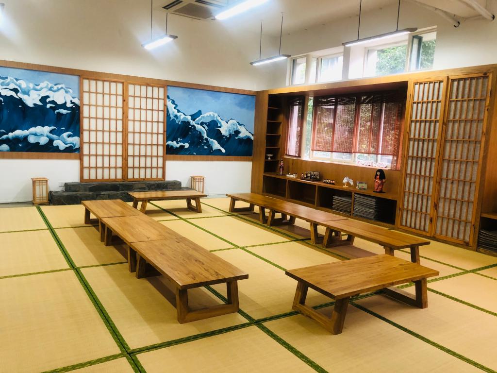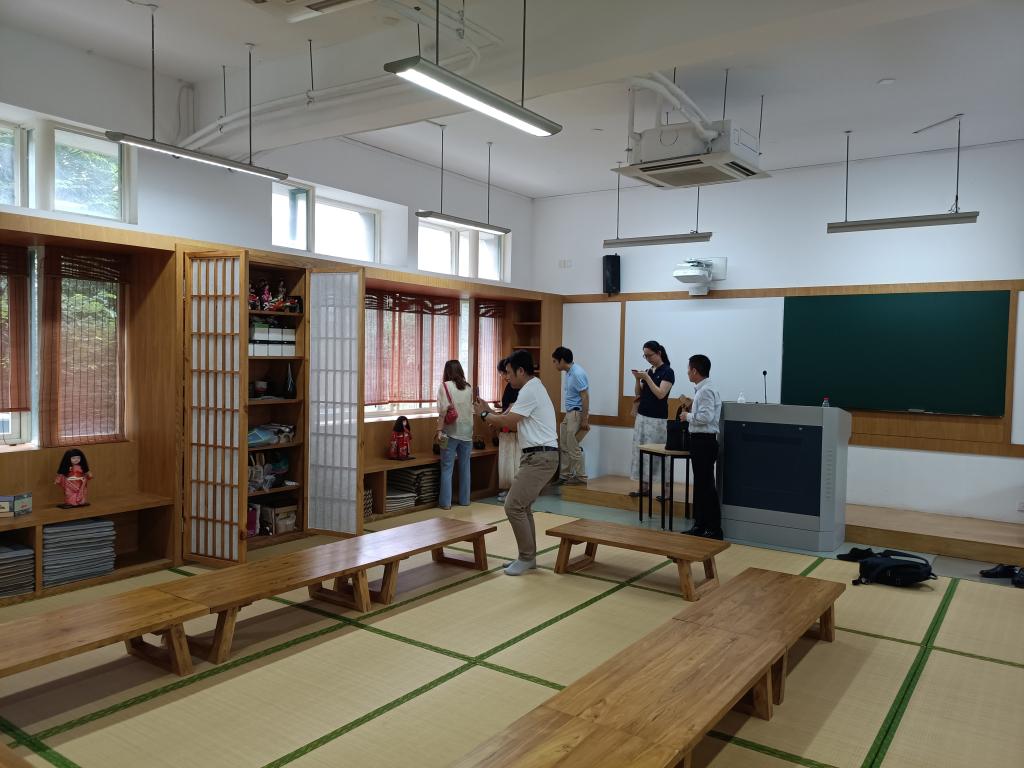 座谈后,董科副院长、陈红主任和刘潇雅副主任陪同一行参观了日本国际交流基金会杭州“心连心”中日友好之窗基地与日本文化体验中心,并详细介绍了学校对于文化楼宇和文化体验中心建设给予了经费、装修等方面的大力支持,同时就文化体验中心的管理和利用等也做了细致的说明。据此得知,日本文化体验中心不仅供日语专业用于实训课程授课,还面向于全校学生社团开放使用,特别还面向开设有日语课程的杭州高中开放,承载着校内实训课和校外社会服务的功能,最大限度地保证了文化体验中心的利用率,也因此受到校内外一致的好评。