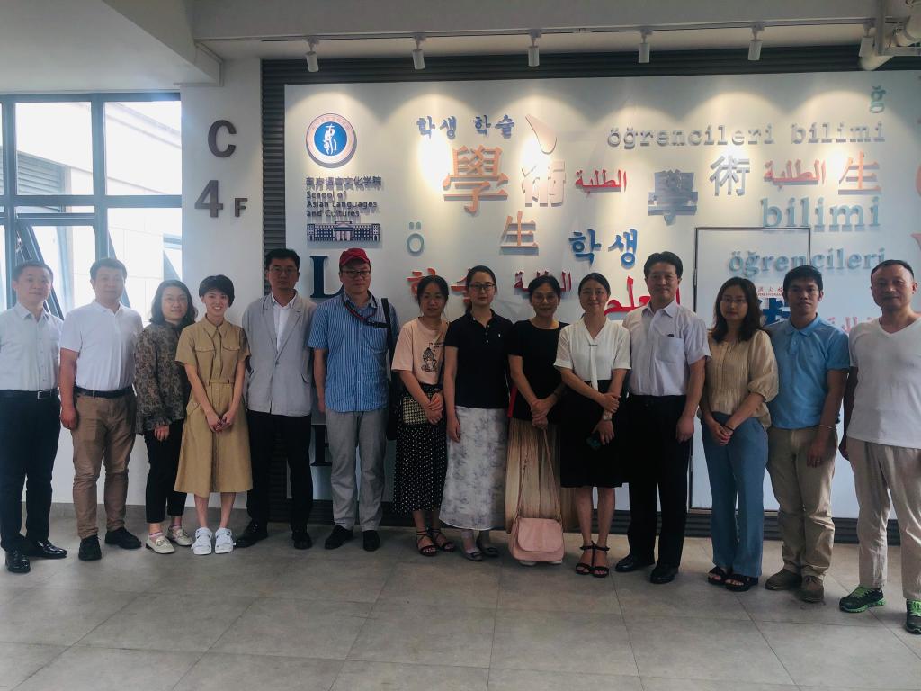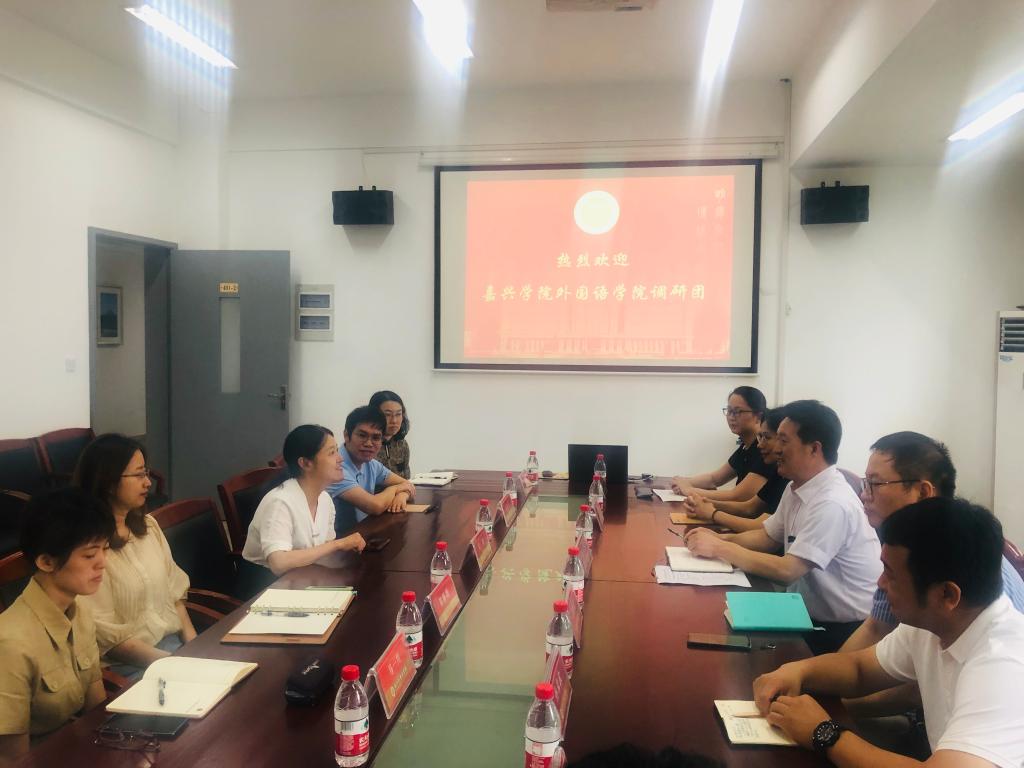 6月28日,私房tv 一行8名教师在副院长郭永恩带领下前往浙江私房tv 东方语言文化学院和浙江工商大学东方语言与哲学学院交流学习,学习两校外语教学文化体验中心建设经验,并就专业人才培养计划、师资队伍建设和实践教学进行了热烈的交流。