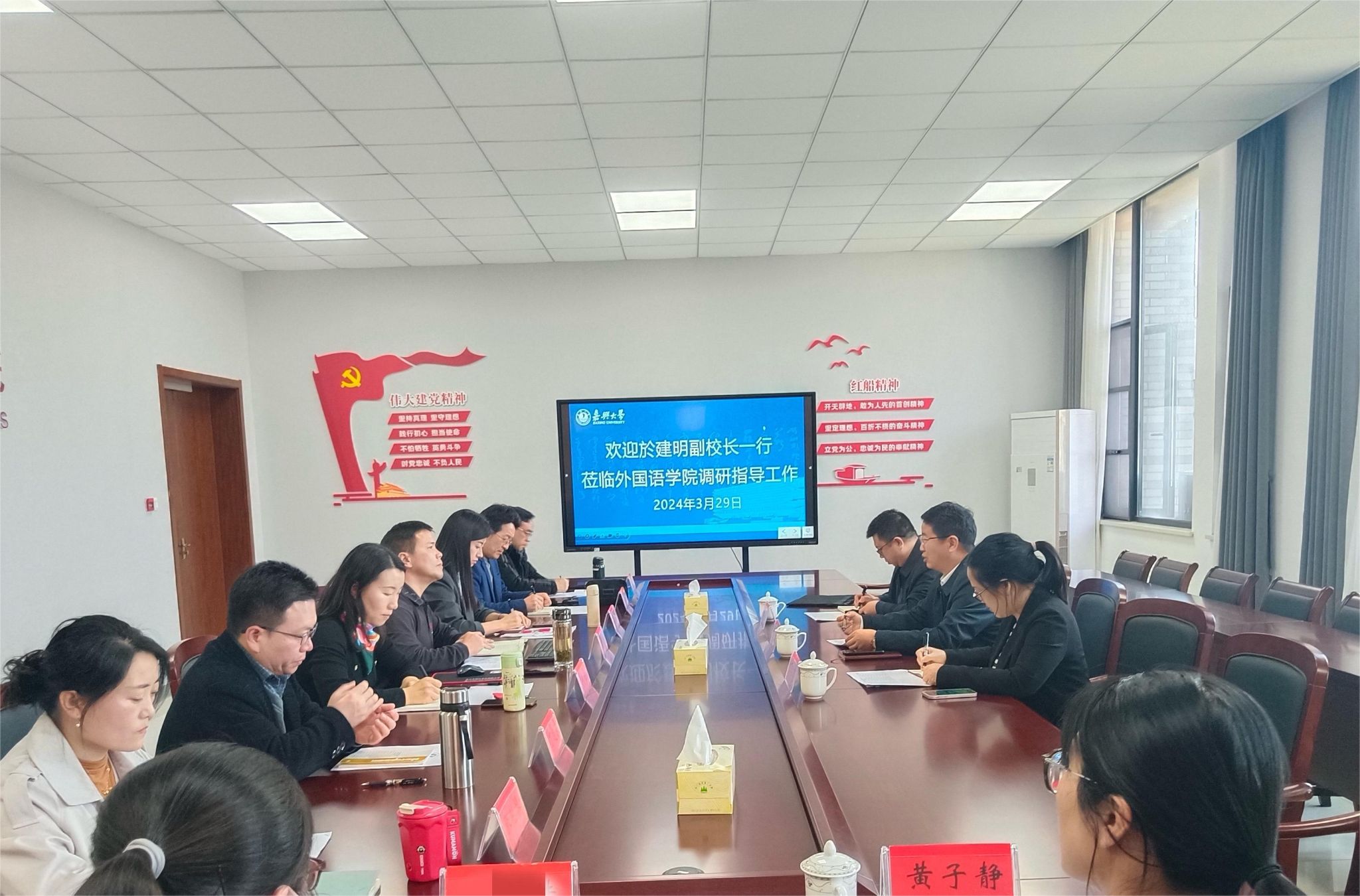 2024年3月29日下午,副校长於建明等一行到私房tv 调研指导工作,私房tv 党政班子全体成员参加调研会议。