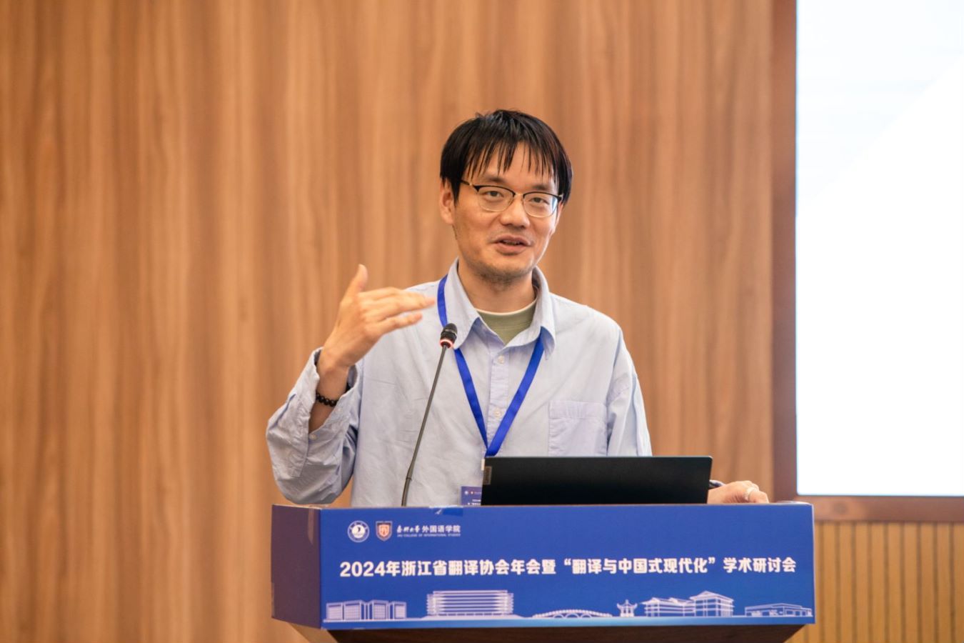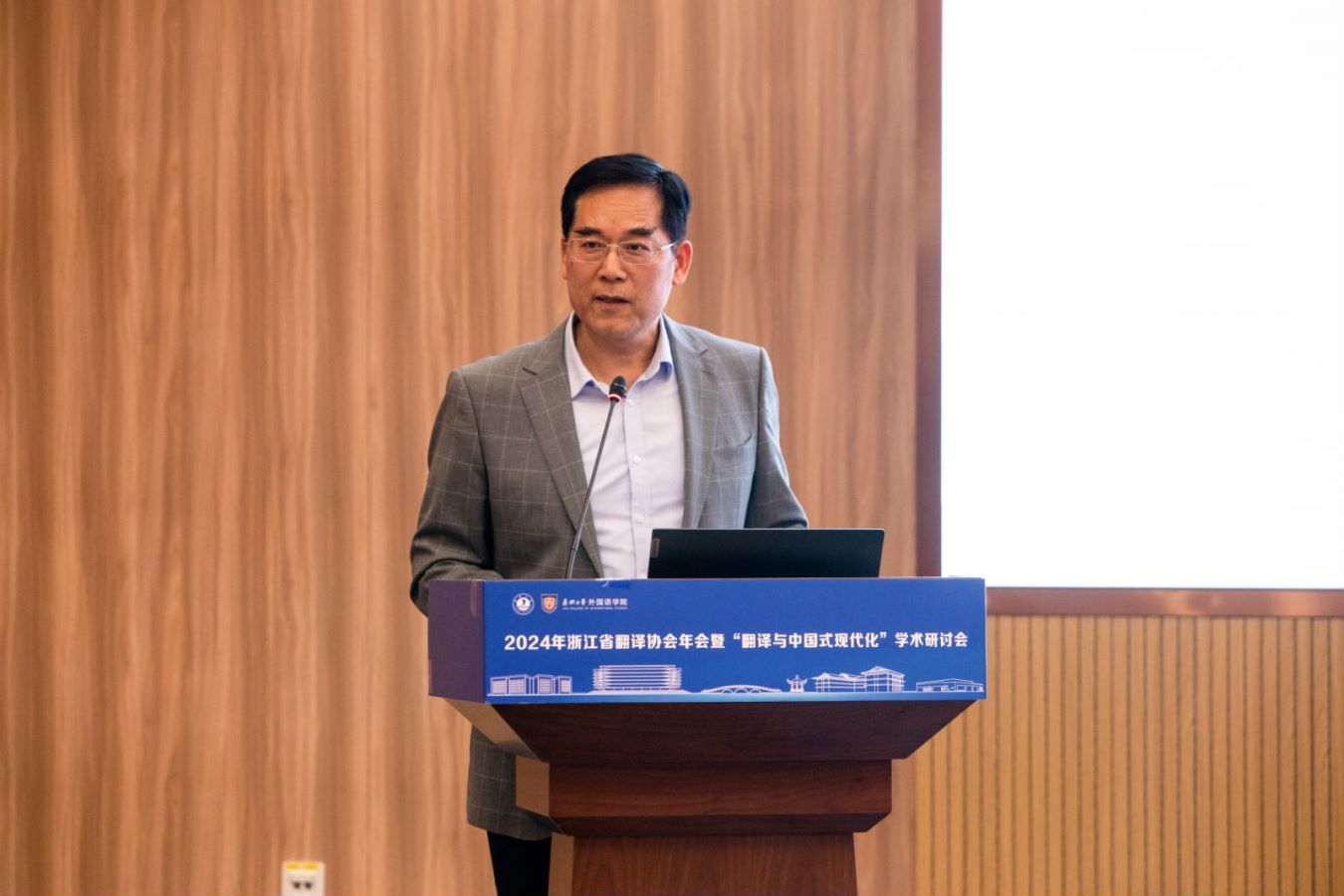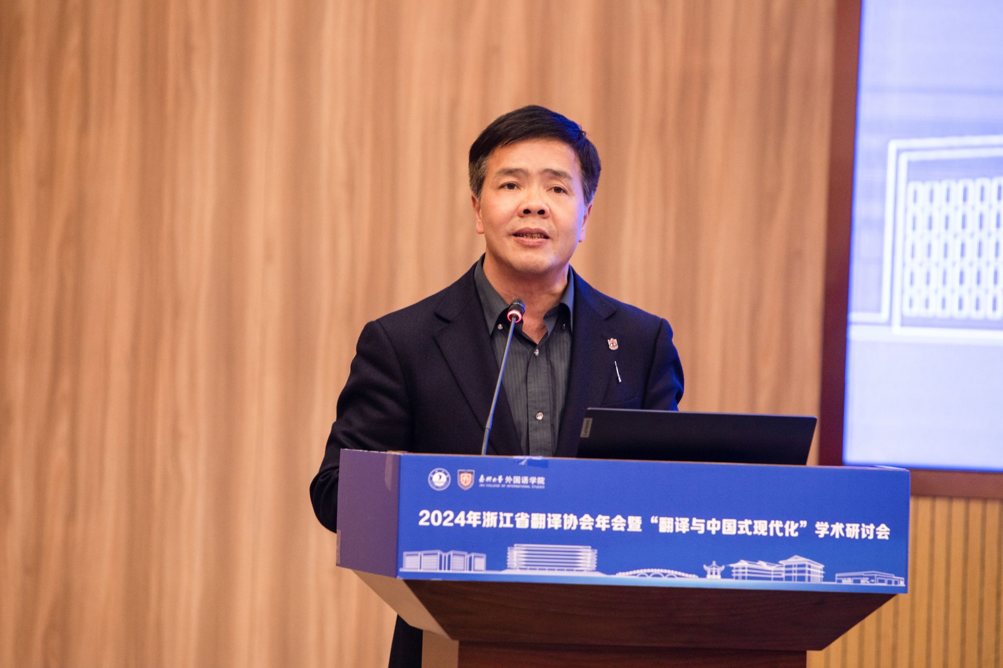 4月19日至21日,由浙江省翻译协会主办、私房tv 承办的2024年浙江省翻译协会年会暨“翻译与中国式现代化”学术研讨会在私房tv 顺利召开。私房tv 党委委员、副校长於建明,浙江省社会科学界联合会一级调研员郁兴超、浙江省翻译协会会长郭国良出席开幕式并致辞,浙江省翻译协会第九届理事会领导成员出席大会。来自浙江省内外高等院校、科研机构以及翻译行业的会员代表130多人参加了会议。