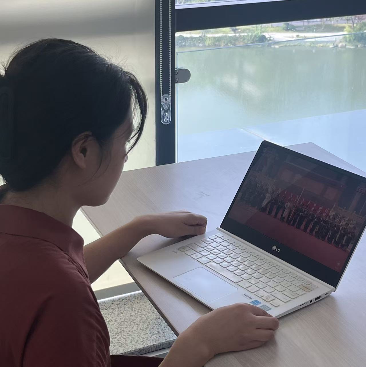 上午9点整,学院系部教师代表、全体行政人员及学生代表共20余人齐聚兴德楼南楼516会议室,共同观看阅兵活动直播。此外,学院还通过系部组织全体教师通过电视、广播、央视新闻、人民网、新华网等官方媒体渠道自行收听收看阅兵活动直播,共同见证这一具有重大政治意义和深远历史意义的国家盛典。