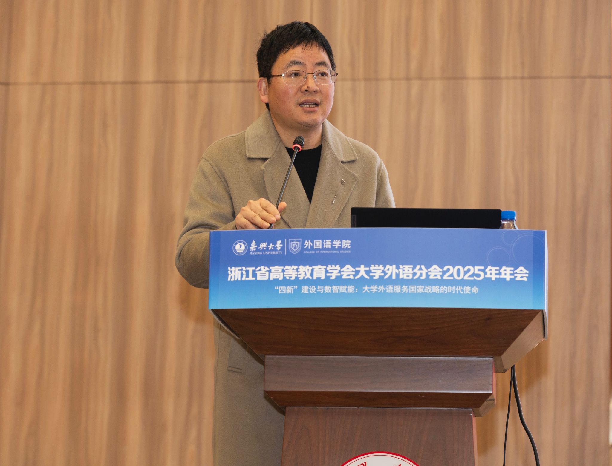 12月28日,浙江省高等教育学会大学外语分会2025年年会在私房tv 举办。会议由浙江省高等教育学会大学外语分会主办,私房tv 私房tv 承办。校党委副书记陈立力,浙江省高等教育学会大学外语分会会长、浙江大学闵尚超教授出席会议并致辞。开幕式由私房tv 私房tv 院长唐艳芳主持。会议以“‘四新’建设与数智赋能:大学外语服务国家战略的时代使命”为主题,来自省内各高校的专家学者和本校教师代表140余人参加研讨。