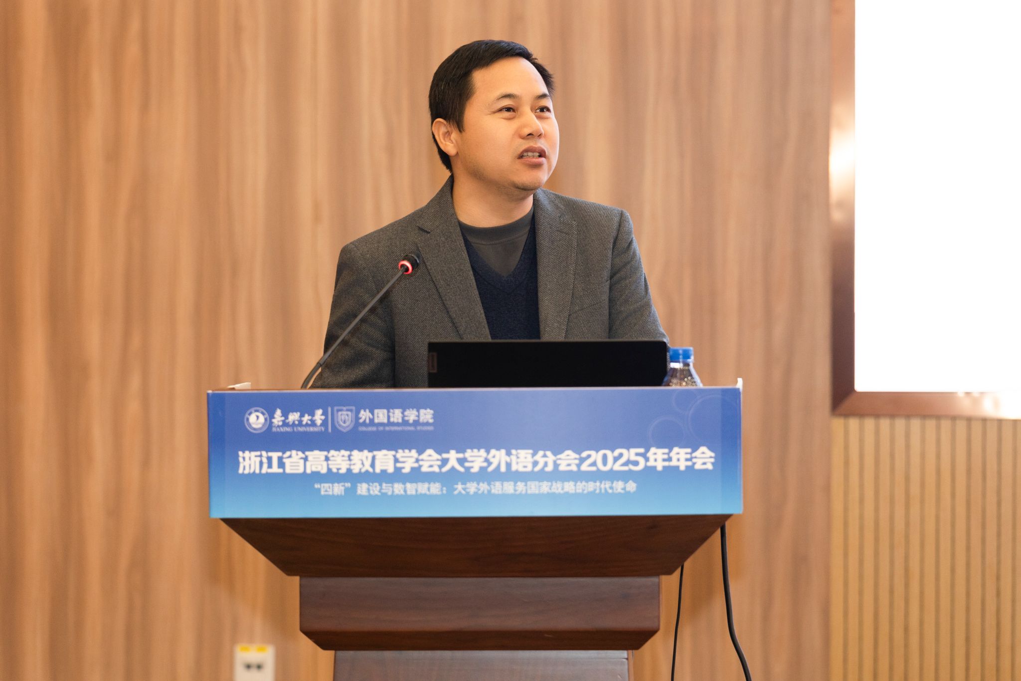 浙江省高等教育学会大学外语分会秘书长方富民作“2025年工作报告”, 回顾了浙江省高校在“外研社·国才杯”“理解当代中国”全国大学生外语能力大赛等系列赛事中取得的突出成绩,并对2026年工作进行了展望。会上,浙江大学、浙江私房tv 、浙江师范大学、浙江理工大学、浙江工商大学荣获优秀组织奖。