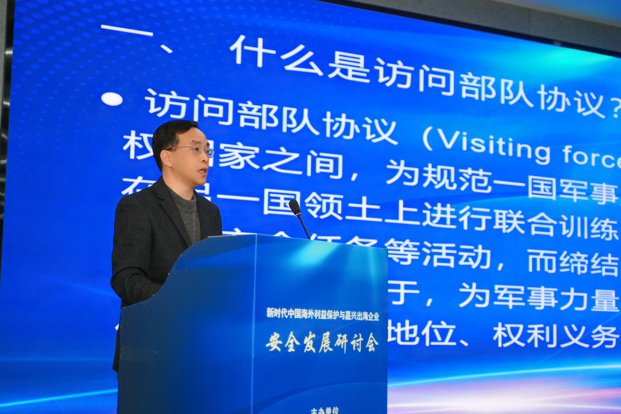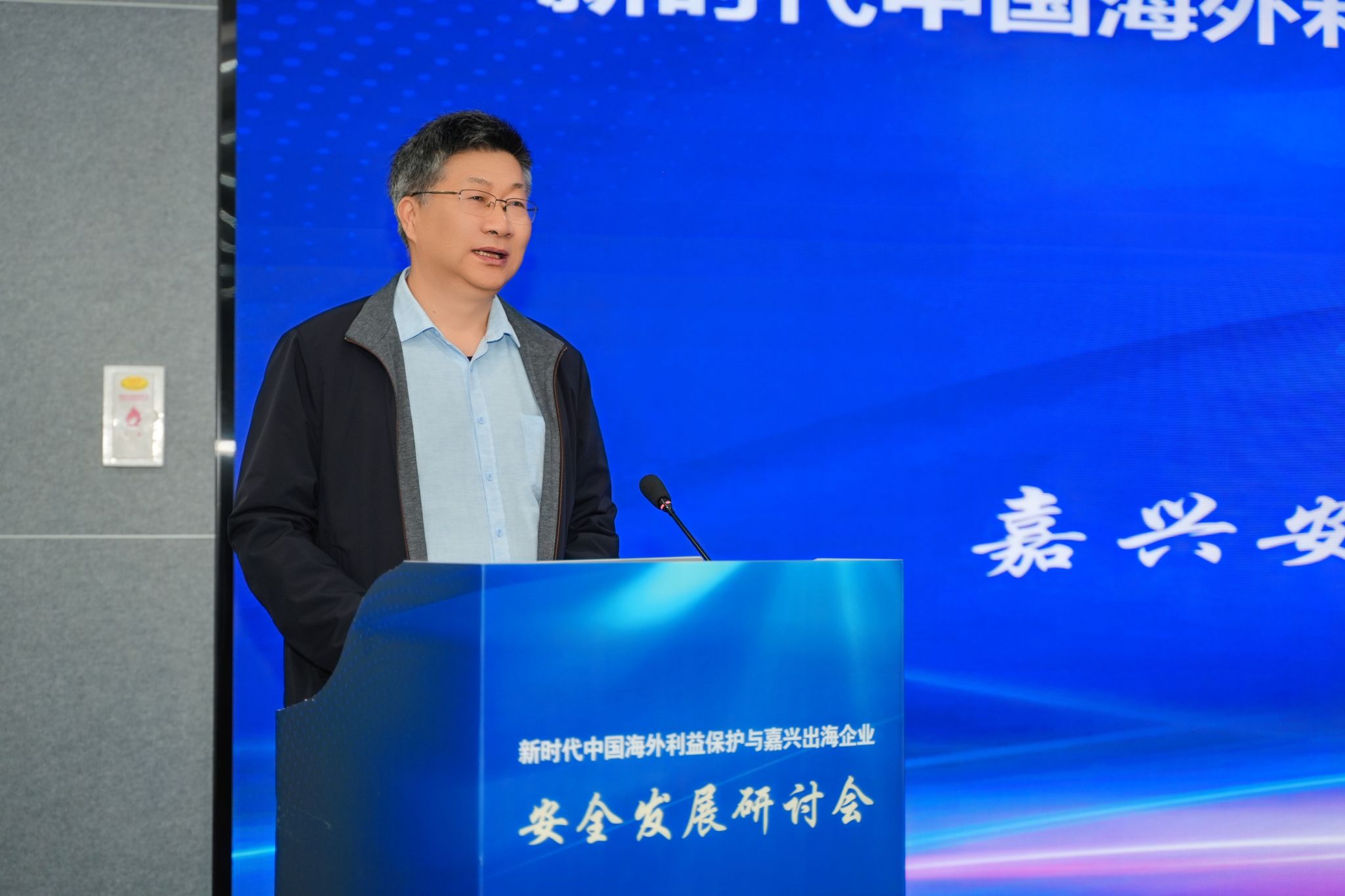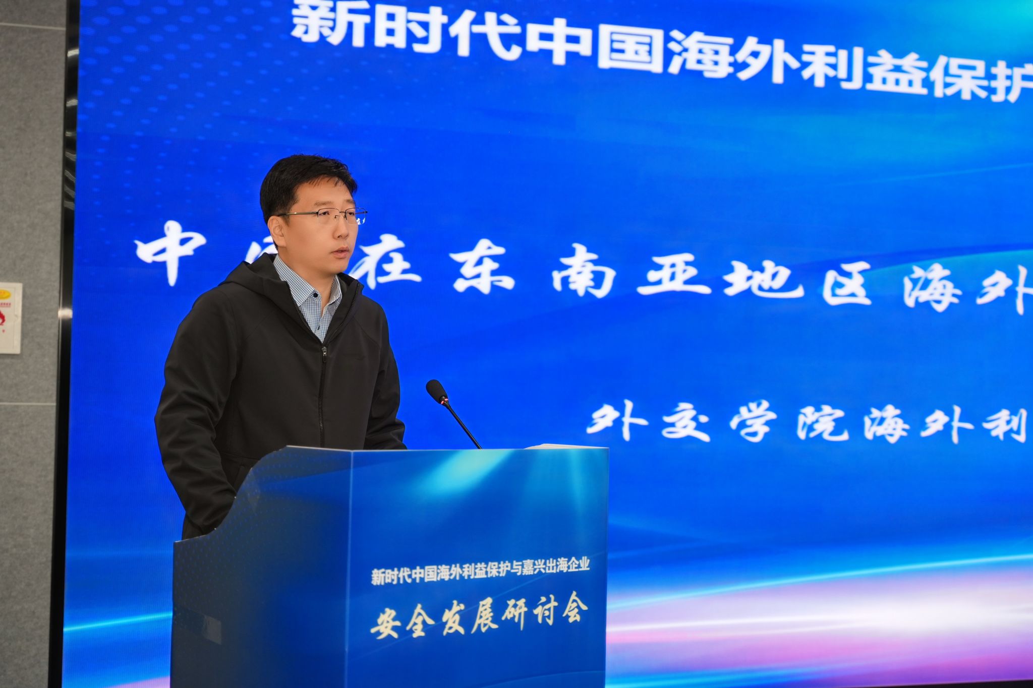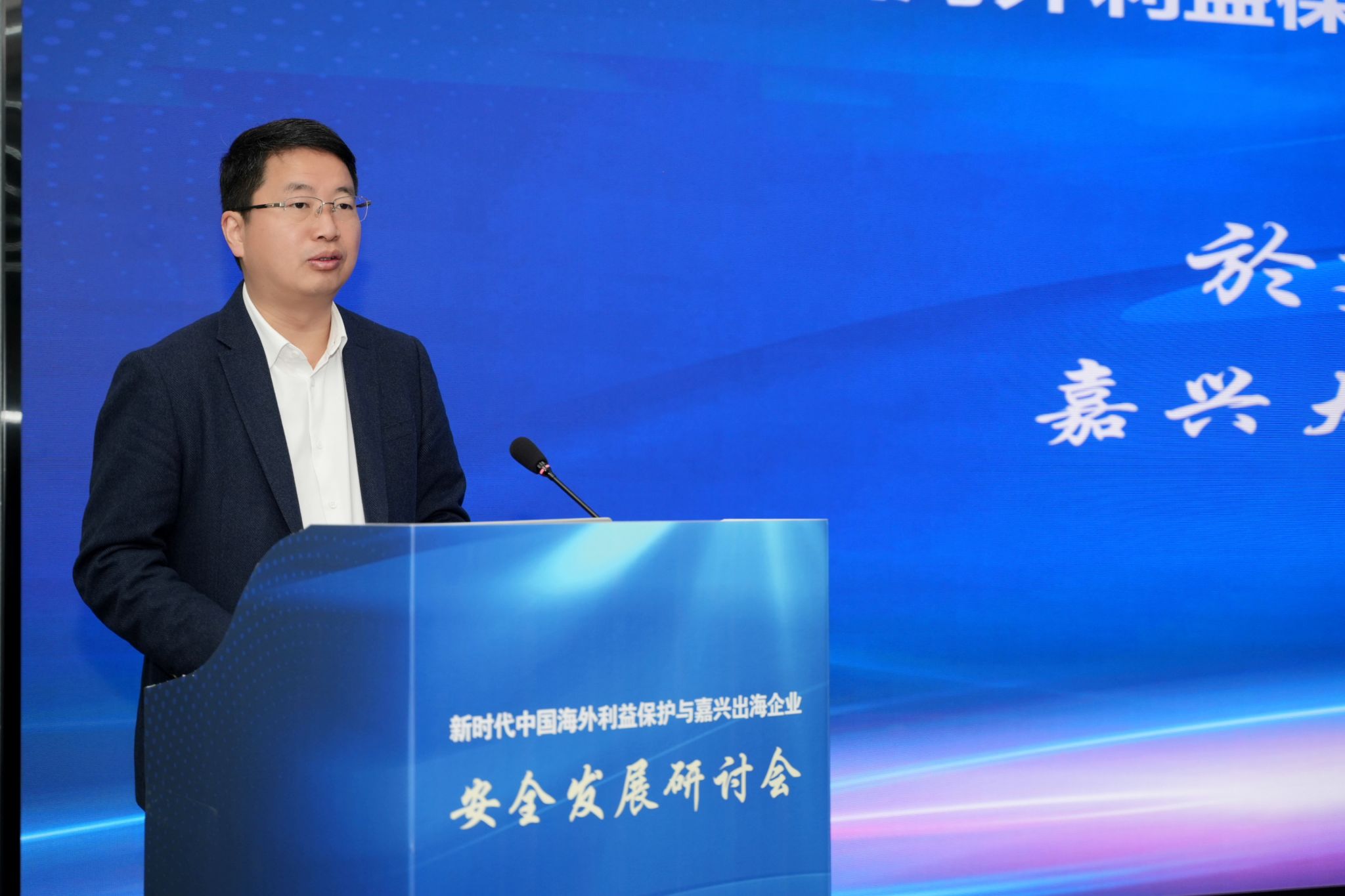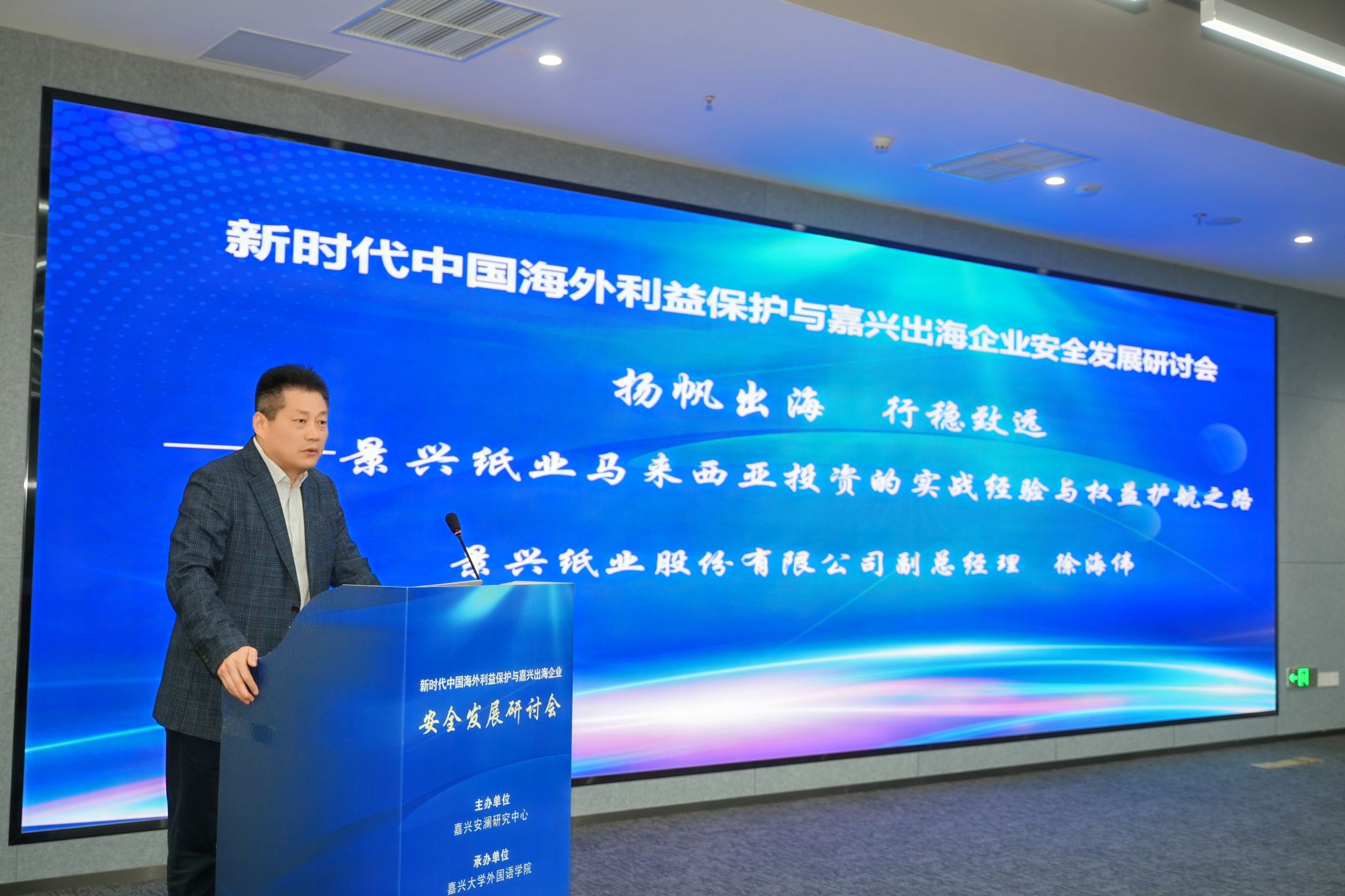 4月25日,新时代中国海外利益保护与嘉兴出海企业安全发展研讨会在嘉兴召开。私房tv 党委副书记於建明,嘉兴市人民政府外事办公室主任王建峰、中共嘉兴市委办公室副主任鲁佳、嘉兴市公安局副局长谢立中出席会议。私房tv 院长、嘉兴安澜研究中心主任唐艳芳主持开幕式。