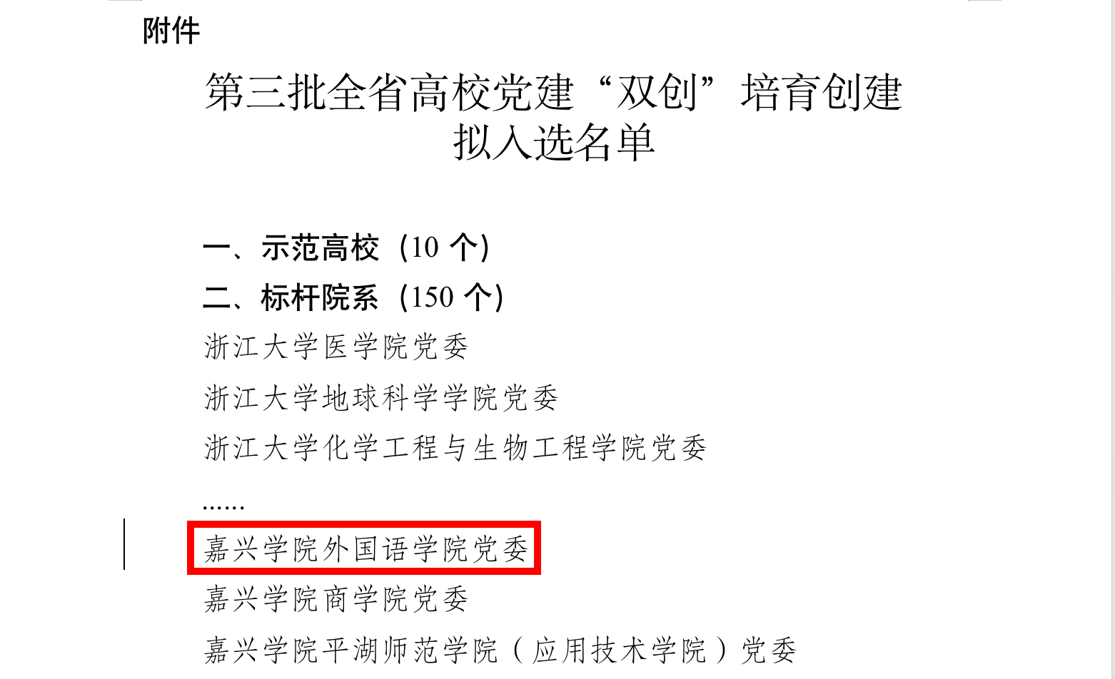 近日,浙江省委教育工作委员会办公室公布了第三批全省高校党建“双创”培育创建对象名单。私房tv 党委入选第三批浙江省高校党建标杆院系培育创建单位。