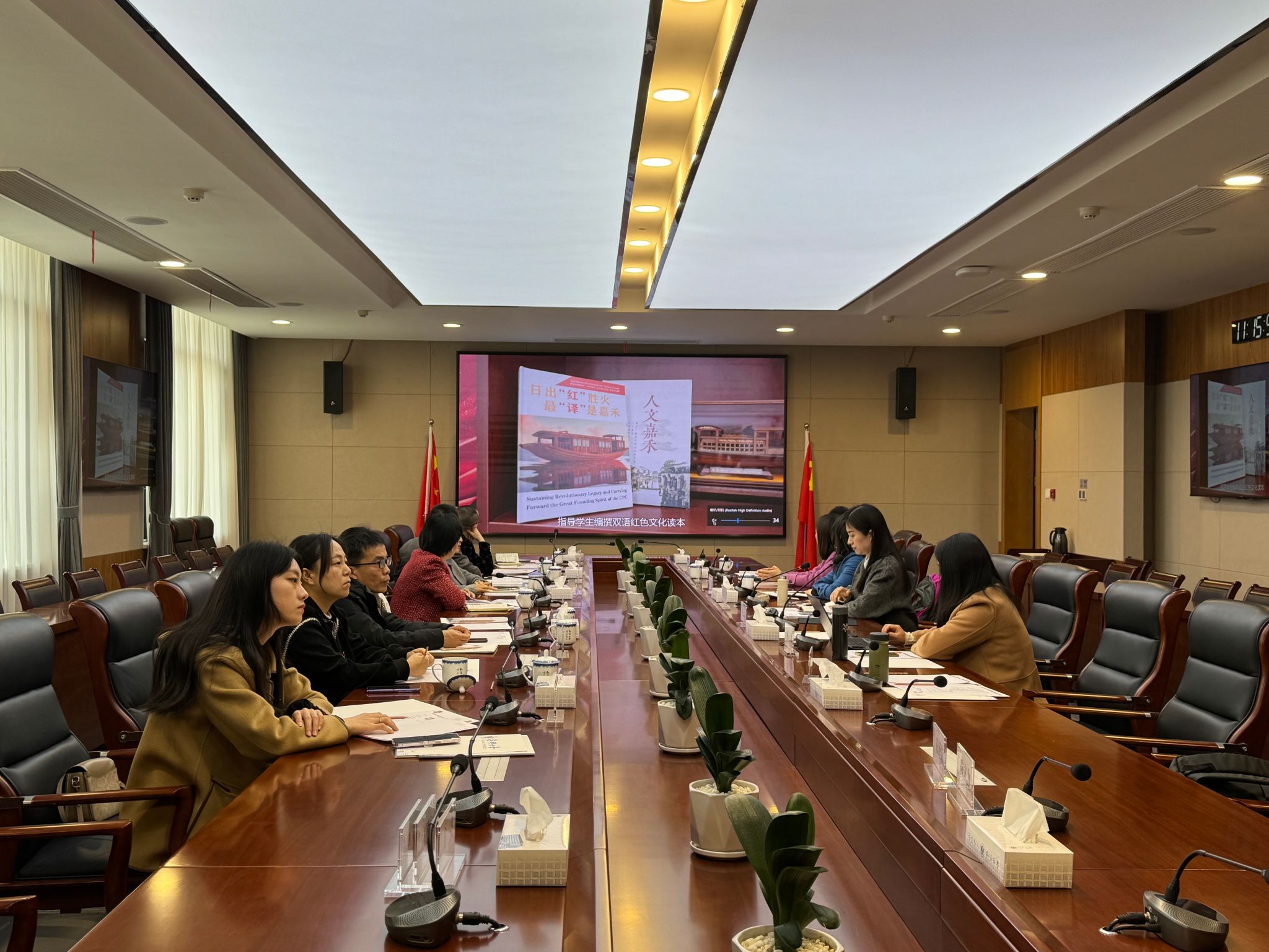 座谈会后景德镇陶瓷大学私房tv 与我院开展党建交流,院党委书记周钰介绍了私房tv 党建基本情况、党建与思想政治工作经验以及学院以“红船精神育人”理念为指引,打造“红色文化外译”党建品牌,创建全国党建样板支部和全省党建标杆院系的做法。第二党支部书记侯飞从支部简介、样板支部的预期建设成果、主要举措等方面介绍了申报第三批“全国党建工作样板支部”的经验与体会,并以视频的方式展现了第二党支部作为全国党建工作样板支部所开展的活动和取得的工作进展。