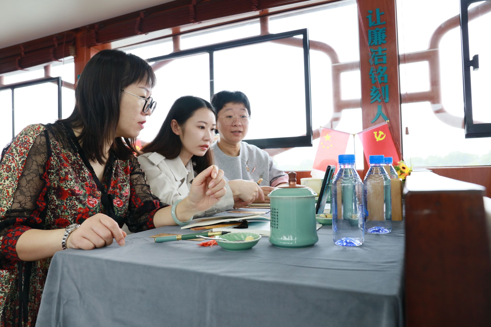 全体与会党员由狮子汇渡口前往宣公祠,实地感受廉政文化熏陶,了解一代廉相陆贽的清廉故事,学习传诵陆宣公以民为本、整顿吏治、反贪倡廉等治国方略,助力企业清廉建设。接着,全体党员在游船上开展了“品一杯莲心茶守一世清廉心”活动。大家品尝南湖清廉茶,了解陆贽《一吊清茶》的故事,观看《一代廉相》微电影,学习陆贽两袖清风、执政为民、清正廉洁的高尚情操,感受嘉兴一脉相承的清廉文化,让党纪学习教育和廉洁理念更加深入人心。