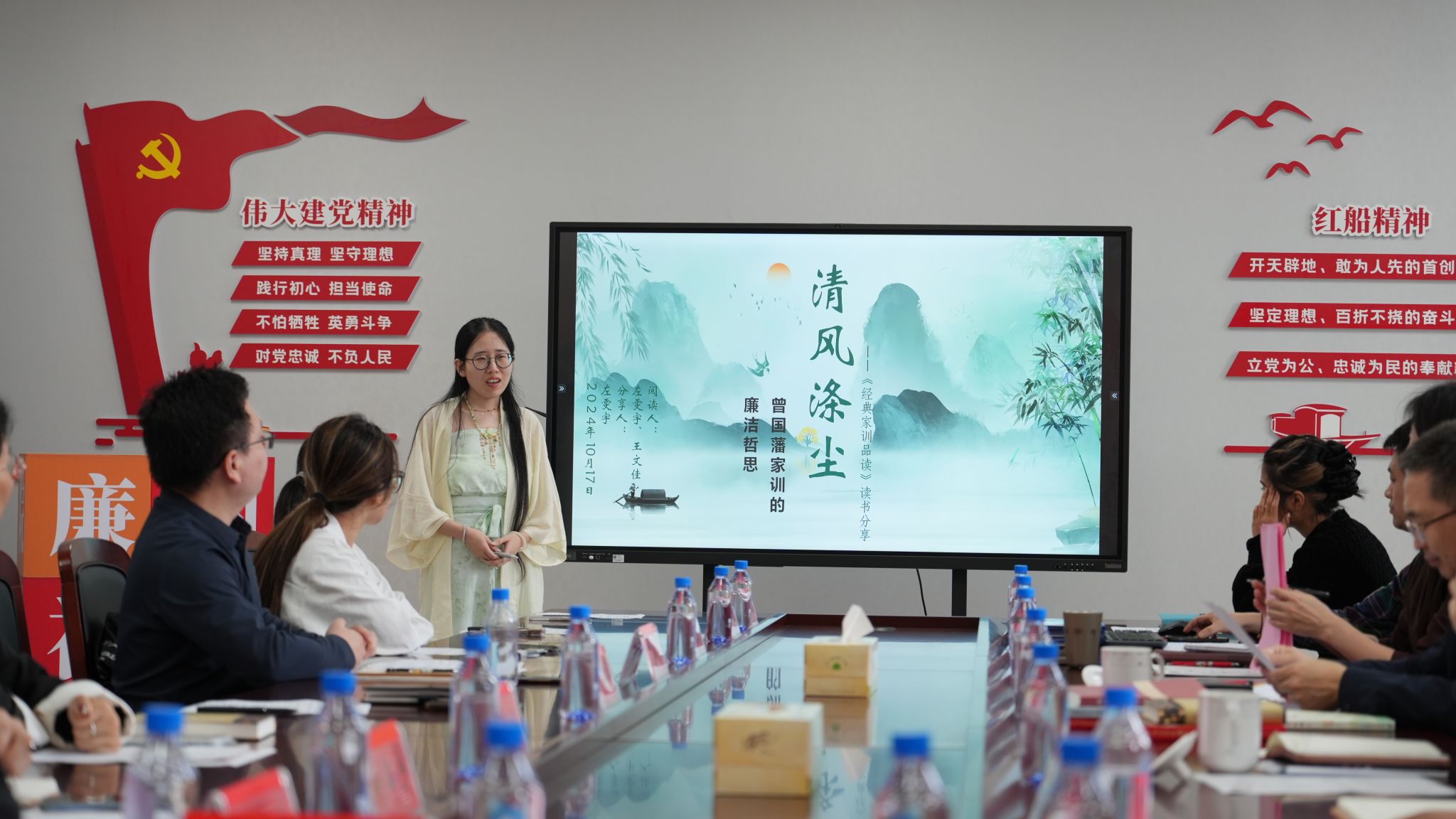 10月17日下午,在学校办学110周年校庆日来临之际,私房tv 在兴德楼南楼516会议室举行主题为“悦读悦享·译廉同行”的师生校友清风读书会。校党委委员、纪委书记、监察专员陈新友到会指导,校纪检监察室(巡察办)副主任杨碧瑜、学院党政领导、师生代表、校友代表参加了本次活动。活动由学院党委书记周钰主持。