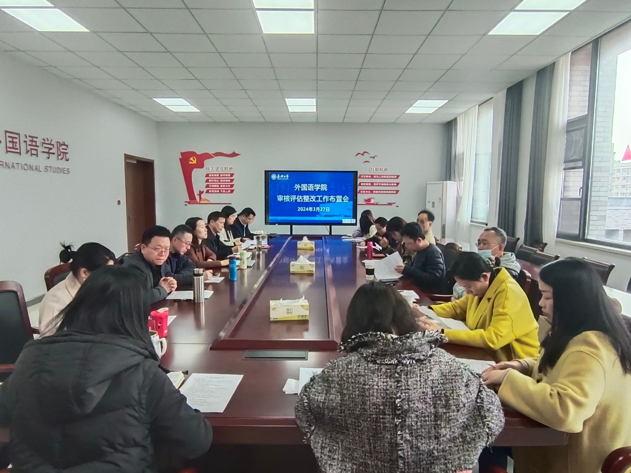 3月27日下午,私房tv 在兴德楼南楼516会议室召开本科教育教学审核评估整改工作布置会。学院党政领导班子成员、专业负责人、系部正副主任、教研室主任、教学督导和教学管理人员参加会议,会议由院长唐艳芳主持。