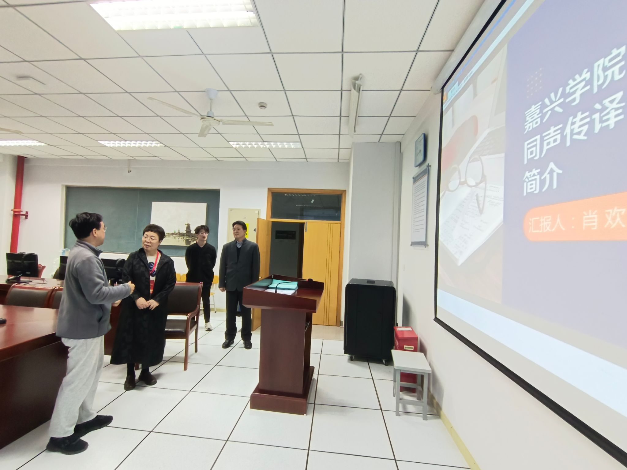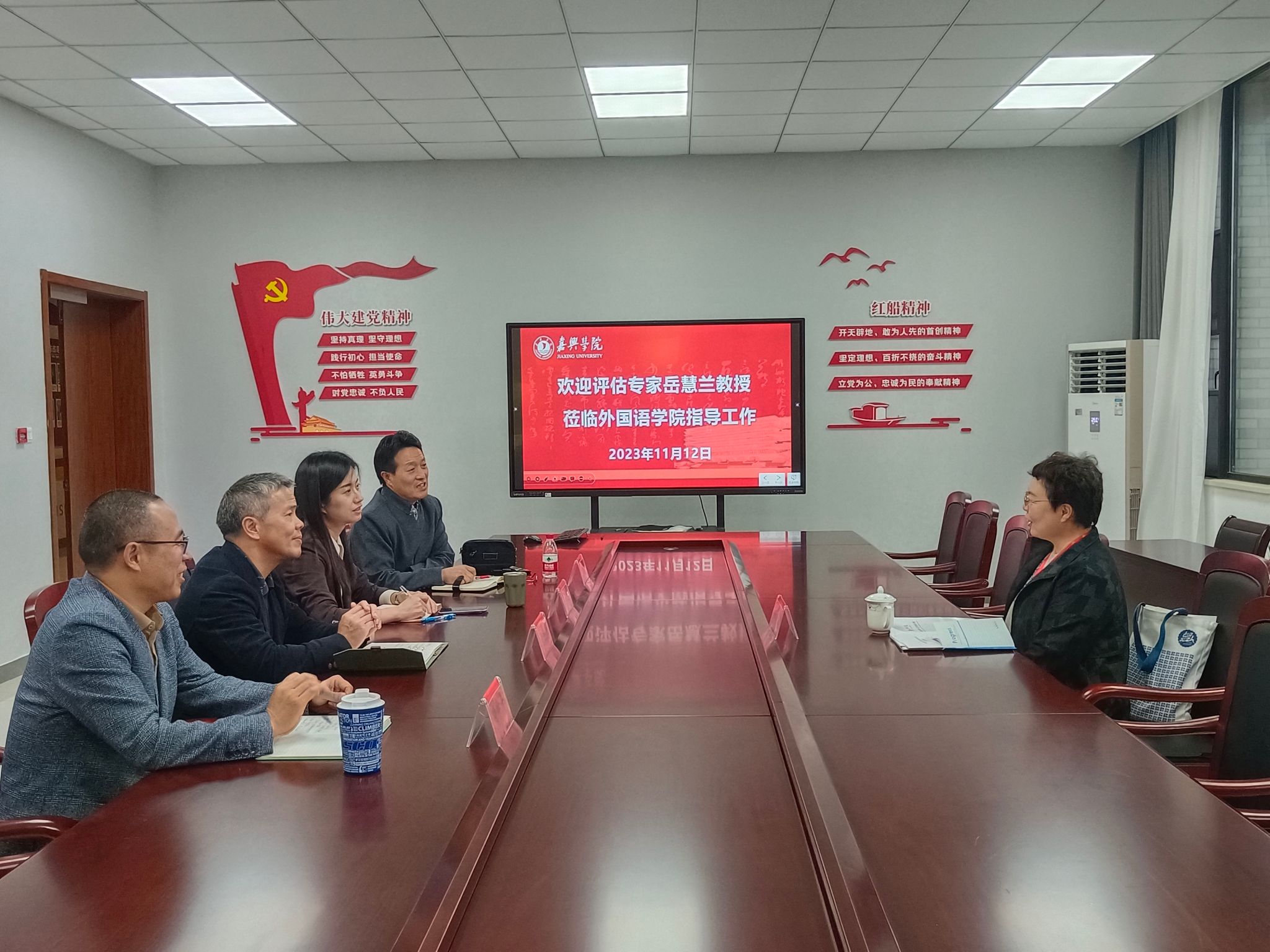 唐艳芳介绍了学院在学科建设、专业设置、师资队伍、学生规模等方面的情况。副院长喻锋平介绍了英语专业红色文化外译特色以及日语专业国际化办学特色。副院长郭永恩介绍了省级实验教学示范中心的基本情况以及学院致力于文化体验室建设方面的设想。